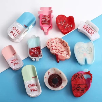 Высококачественные Мультяшные таблетки, игла для мозга, кепка медсестры с красным сердцем, акриловый зажим для волос